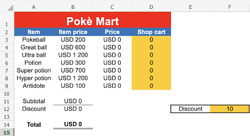 Note: Coloring the input fields can be helpful for those who will use the spreadsheet. In this case we marked the input fields with the yellow color: ffcb05.