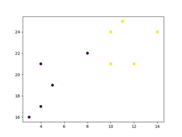 classes = [0, 0, 1, 0, 0, 1, 1, 0, 1, 1]